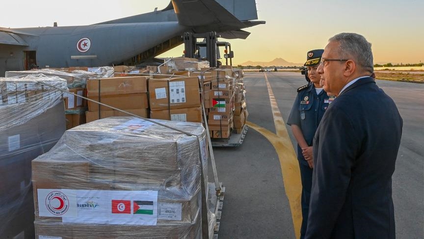 أعلنت تونس، الأحد، إرسال طائرة عسكرية محملة ب12 طنا من المساعدات الطبية والصحية لفائدة الشعب الفلسطيني.