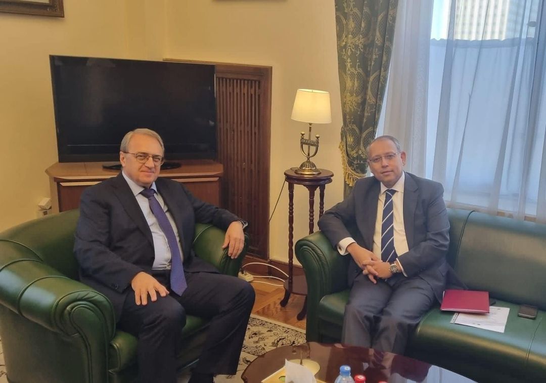 بحث السفير نزيه النجاري، سفير مصر في موسكو مع السفير ميخائيل بوجدانوف، نائب وزير الخارجية ومبعوث الرئيس فلاديمير بوتين للشرق الأوسط وأفريقيا، تطورات الوضع في الأراضي الفلسطينية.