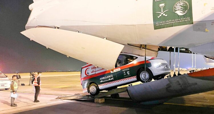 غادرت مطار الملك خالد الدولي بالرياض اليوم الطائرة الإغاثية السعودية الثامنة والتي يسيرها مركز الملك سلمان للإغاثة والأعمال الإنسانية، متجهة إلى مطار العريش الدولي بجمهورية مصر العربية تحمل على متنها (3) سيارات إسعاف، تمهيداً لنقلها إلى المتضررين من الشعب الفلسطيني داخل قطاع غزة.