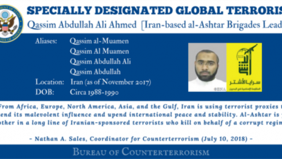 أعلن مكتب مراقبة الأصول الأجنبية التابع لوزارة الخزانة الأمريكية، أنه وبالتنسيق مع مملكة البحرين، اتخذ إجراءات ضد العناصر الرئيسية لما يسمى بمجموعة “سرايت الأشتر” المتمركزة في إيران، و الميسر المالي لكتائبه، باعتباره منظمة إرهابية أجنبية.