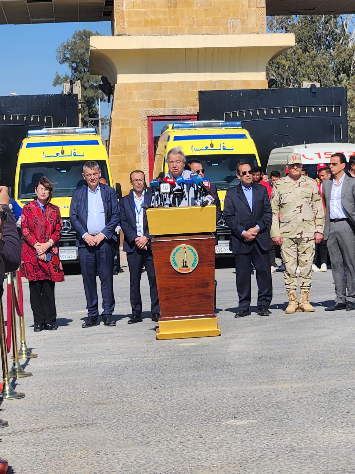 القى أنطونيو وجوتيريش الامين العام للأمم المتحدة كلمة امام معبر رفح اليوم السبت