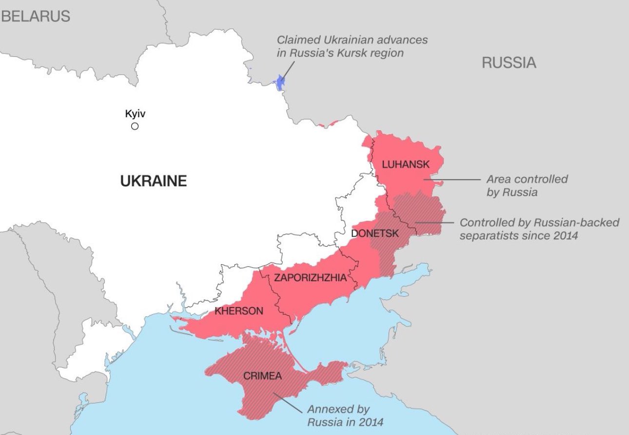 وأفادت رويترز أن مبعوث ترامب، فيتكوف، أبلغه، بعد اجتماعه مع المبعوث الروسي دميترييف، أن أسرع طريقة للتوصل إلى وقف إطلاق نار هي منح روسيا أربع مناطق: خيرسون، وزابوريزهيا، ولوغانسك، ودونيتسك. لا تزال أوكرانيا تسيطر على: – 42% من خيرسون (حوالي 300 ألف نسمة) – 40% من دونيتسك (حوالي 200 ألف نسمة) – 30% من زابوريزهيا (حوالي 600 ألف نسمة) – 2% من لوغانسك (حوالي 1000 نسمة).