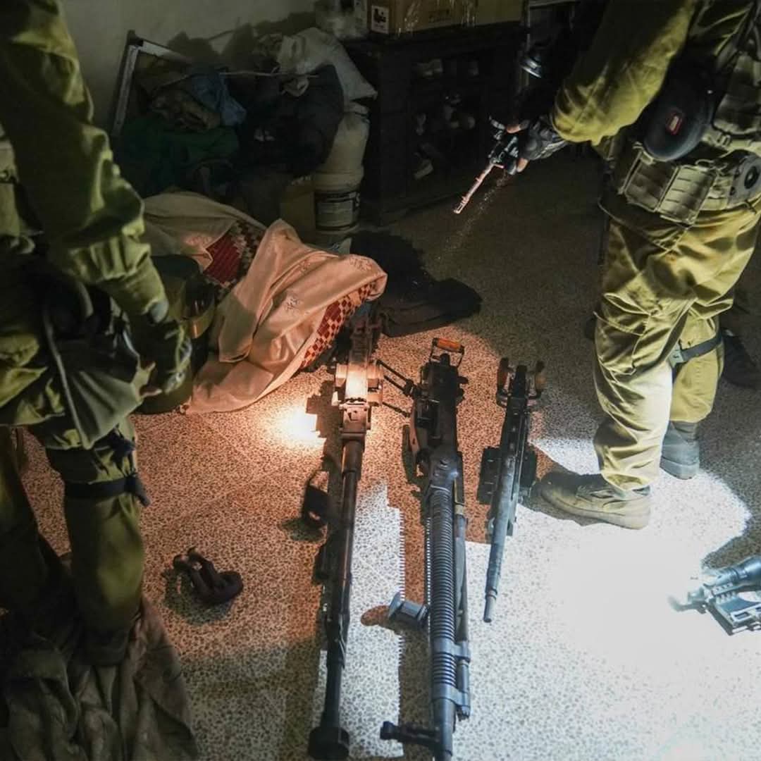 كما عثرت القوات الإسرائيلية داخل المنطقة على “وسائل قتالية وصادرتها، بما في ذلك أسلحة نارية ومخازن ذخيرة وأنواع ذخيرة”.