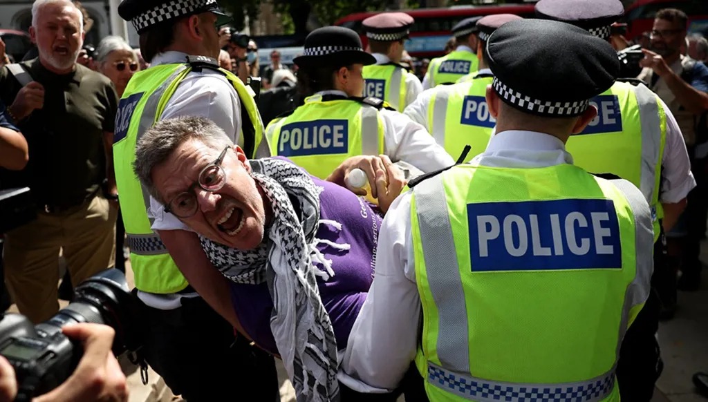 أوقفت شرطة العاصمة البريطانية، اليوم السبت، ما لا يقل عن 200 شخص خلال تظاهرة احتجاجية في وسط لندن دعما لمنظمة “فلسطين أكشن”، والتي كانت الحكومة قد حظرتها الشهر الماضي بموجب قوانين مكافحة الإرهاب.