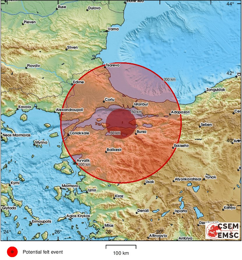 وأكدت الإدارة أن سكان عدد من الولايات المجاورة، من بينها إسطنبول، إزمير، إسكشهير وتكيرداغ، شعروا بالهزة الأرضية بشكل ملحوظ، دون ورود تقارير مؤكدة حتى الآن عن خسائر بشرية أو مادية.
