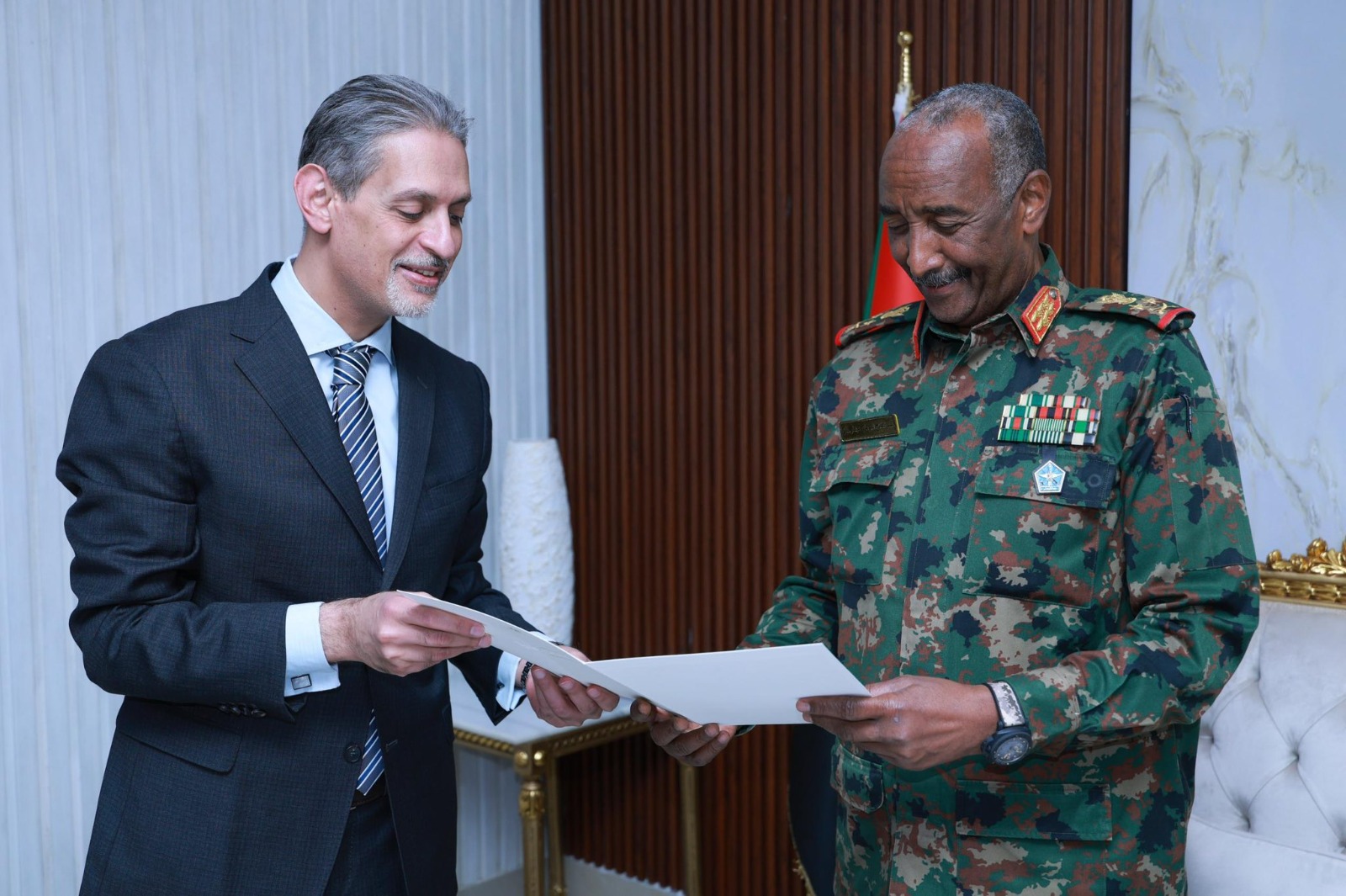 تسلم رئيس مجلس السيادة السوداني عبدالفتاح البرهان، اليوم رسالة خطية من الرئيس المصري عبد الفتاح السيسي، تتعلق بمسار العلاقات الثنائية بين البلدين وسبل دعمها وتطويرها وتقويتها في كافة المجالات.