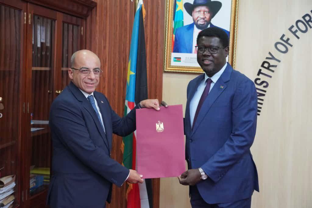 قدم السفير حازم ممدوح فوزي، سفير جمهورية مصر العربية لدى جمهورية جنوب السودان، نسخة من أوراق اعتماده إلى السفير ماندي سيمايا كومبا، وزير الخارجية والتعاون الدولي بجنوب السودان، وذلك خلال مراسم رسمية أقيمت بمقر وزارة الخارجية في جوبا.