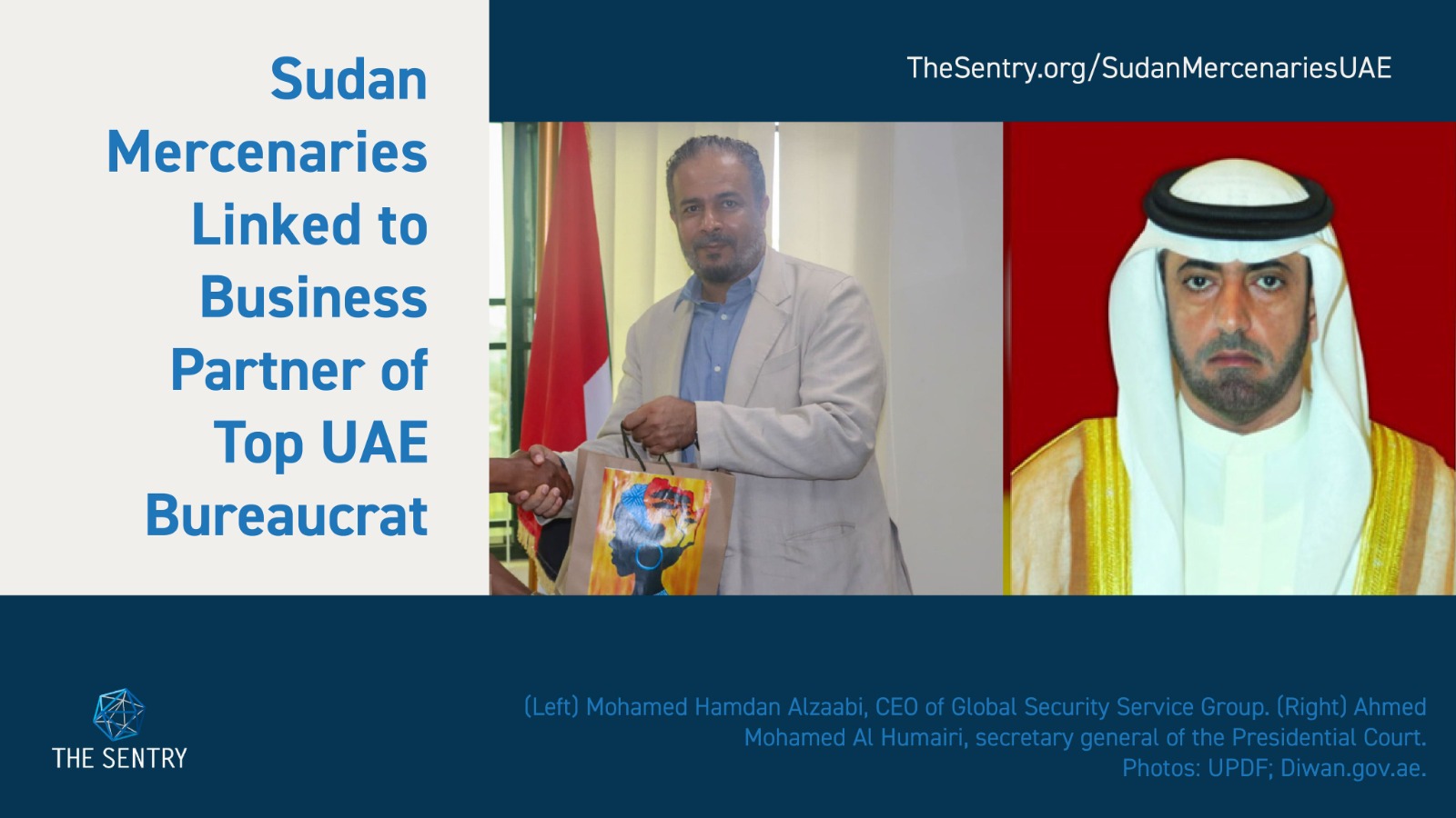 تشير الوثائق إلى أن شركة GSSG، المسجلة في الإمارات ويملكها محمد حمدان الزعابي، تتولى ترتيب نشر المرتزقة الكولومبيين في السودان. أسس الشركة أحمد محمد الحميري، الأمين العام لديوان الرئاسة الإماراتي، قبل أن ينقل كامل أسهمها إلى شريكه الزعابي في 2017.