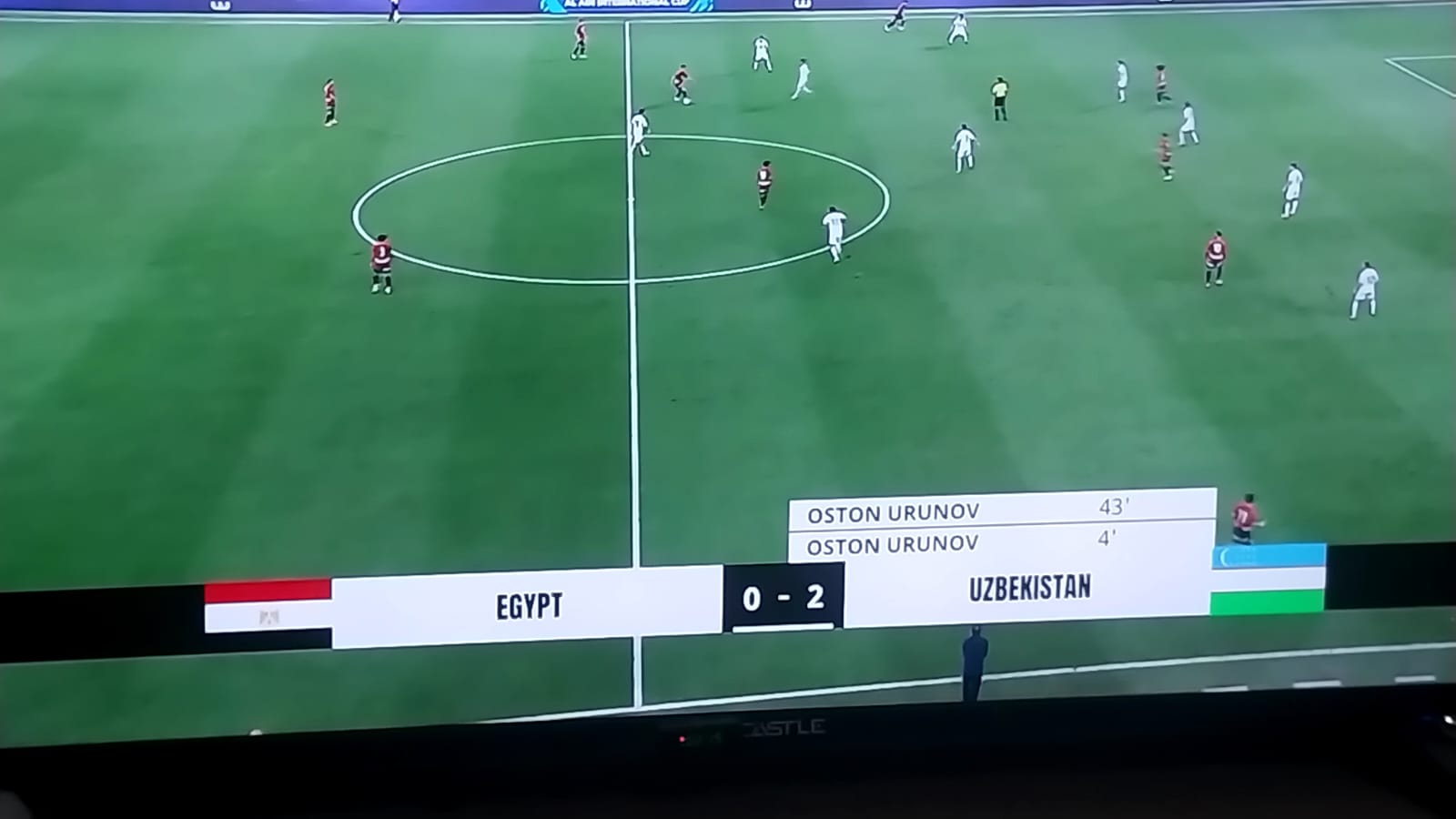 . وانتهى الشوط الأول بتقدم أوزبكستان بهدفين على فريق مصر