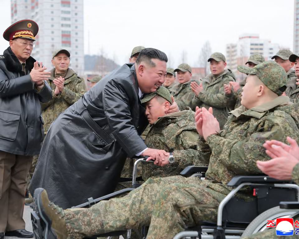 أظهرت الصور الرسمية التي نشرتها KCNA كيم وهو يحتضن الجنود العائدين، بعضهم جريح أو على كراسي متحركة، كما قدم التعازي لعائلات القتلى وركع أمام صورهم لتكريمهم بوضع ميداليات وزهور. وأكد كيم أنه لم ينسَ أبداً الجنود خلال فترة الـ120 يوماً من المهمة، مشيداً بصبر الأسر ومعاناتها أثناء غياب أبنائها.