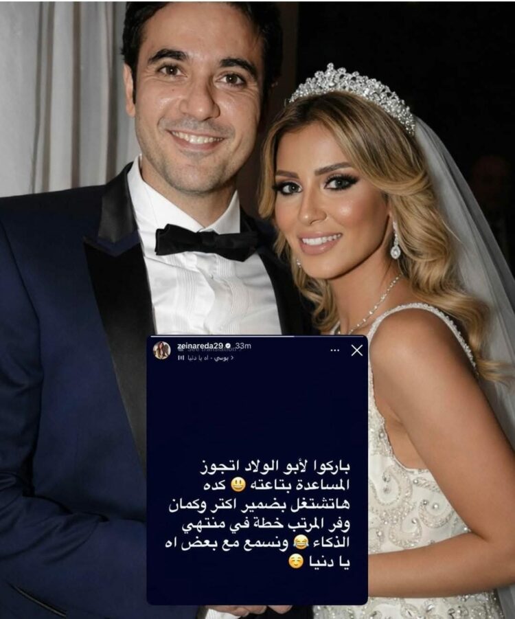 القصة بدأت مع «ستوري» نشرتها زينة على حسابها عبر إنستجرام، طلبت فيها من جمهورها أن يباركوا لـ«أبو الولاد» على زواجه من مساعدته الخاصة، مستخدمة لغة ساخرة توحي بأن الأمر ليس مجرد تهنئة تقليدية بل رسالة مبطنة مليئة بالعتاب والاتهام.