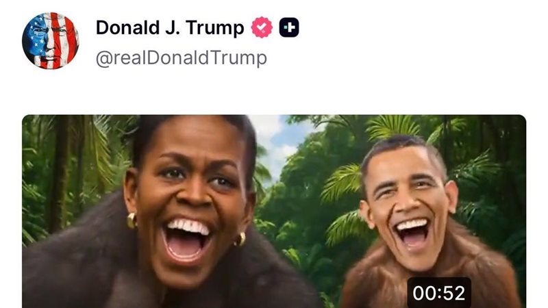 أثار الرئيس الأمريكي دونالد ترامب جدلاً واسعًا اليوم الجمعة بنشره فيديو ساخرًا على منصته الخاصة “تروث سوشيال”، يستهدف الرئيس الأسبق باراك أوباما وزوجته ميشيل أوباما.