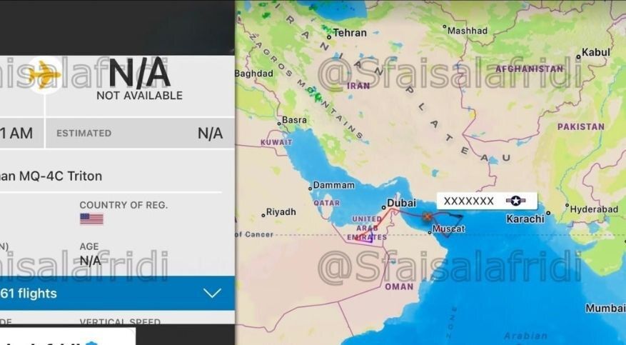 في المقابل، أقلعت الطائرة المسيّرة ترايتون من أبوظبي في دولة الإمارات العربية المتحدة، وحلّقت فوق خليج عُمان، في مسار يُعد ملاصقًا للمجال الحيوي الإيراني، ما يعكس مستوى متقدمًا من الرصد والمراقبة.