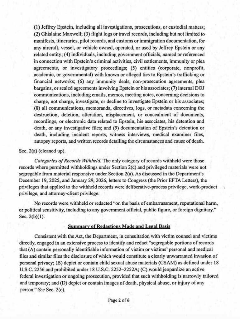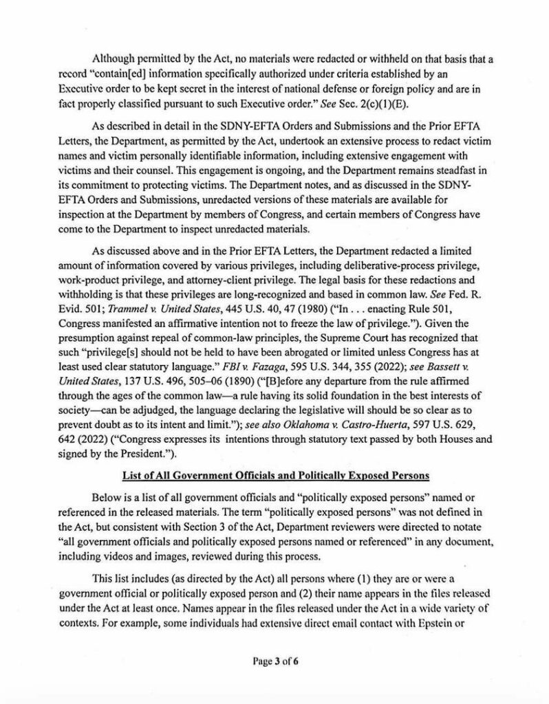 أرسلت وزارة العدل الأمريكية رسالة رسمية إلى لجنتي القضاء في مجلسي النواب والشيوخ، توضّح فيها التفاصيل القانونية والإجرائية للتعديلات التي أُجريت على ملفات جيفري إبستين وغيسلين ماكسويل، في إطار تطبيق “قانون شفافية ملفات إبستين”، مؤكدة أن الهدف الأساسي كان حماية الضحايا وضمان سلامة التحقيقات الجارية، وليس الإخفاء أو حماية سمعة أي شخصية عامة.