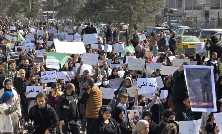 القامشلي – المنشر الاخباري، 25 فبراير 2026، خرج مئات الأشخاص من عائلات مقاتلي قوات سوريا الديمقراطية “قسد” المعتقلين لدى الحكومة السورية، في مظاهرة حاشدة بمدينة القامشلي شمال شرق سوريا، رافعين أصواتهم مطالبين بكشف مصير أبنائهم المفقودين وإطلاق سراح من تثبت أسرتهم احتجازهم.