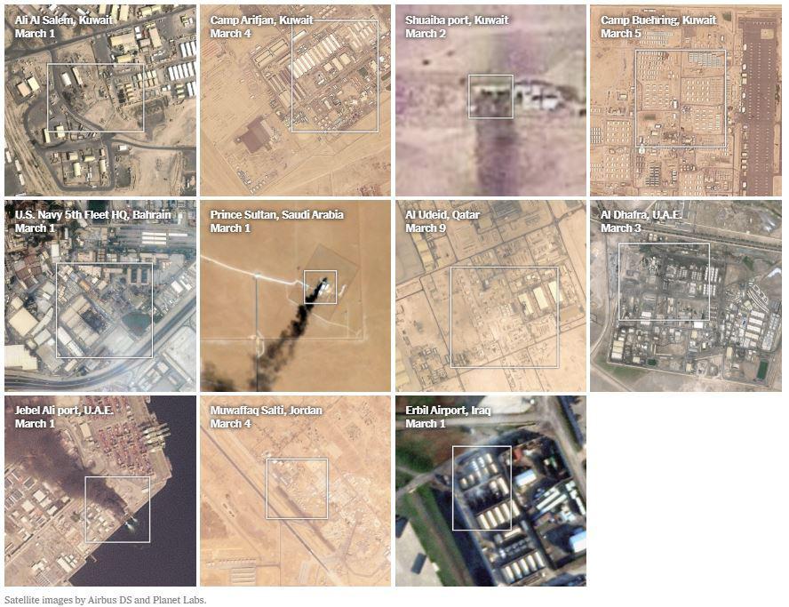 ففي معسكر عريفجان بالكويت، استهدفت إيران ثلاث قباب رادار رئيسية، بينما أظهرت صور التقطت بعد الضربات تعرض ستة مبانٍ أو منشآت على الأقل لأضرار أو دمار في قاعدة علي السالم الجوية، خاصة بالقرب من البنية التحتية للاتصالات عبر الأقمار الصناعية.