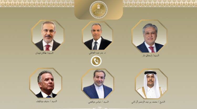 أجرى وزير الخارجية المصري، الدكتور بدر عبد العاطي، سلسلة من الاتصالات الهاتفية رفيعة المستوى مع عدد من المسؤولين الدوليين والإقليميين، شملت كلا من إسحاق دار نائب رئيس الوزراء وزير الخارجية الباكستاني، وهاكان فيدان وزير خارجية تركيا، والشيخ محمد بن عبد الرحمن آل ثاني رئيس الوزراء وزير الخارجية القطري، وعباس عراقجي وزير الخارجية الإيراني، بالإضافة إلى ستيف ويتكوف المبعوث الأمريكي الخاص للشرق الأوسط.