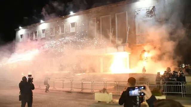 وأظهرت مقاطع فيديو جرى تداولها بكثافة عبر منصة (X) أعمدة الدخان وهي تغطي وسط تيرانا، بينما كانت قنابل المولوتوف تشتعل في محيط المباني الرسمية ومركبات الشرطة.