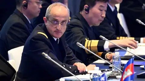 وقال Nicolas Vaujour (نيكولا فوجور) رئيس أركان البحرية الفرنسية، إنه أجرى خلال الفترة الأخيرة سلسلة محادثات مع نظرائه في عدة دول، بهدف تبادل التحليلات وتنسيق التحركات بشأن الوضع في المنطقة، موضحًا أن المشاورات ركزت بشكل أساسي على حرية الملاحة والأمن البحري.