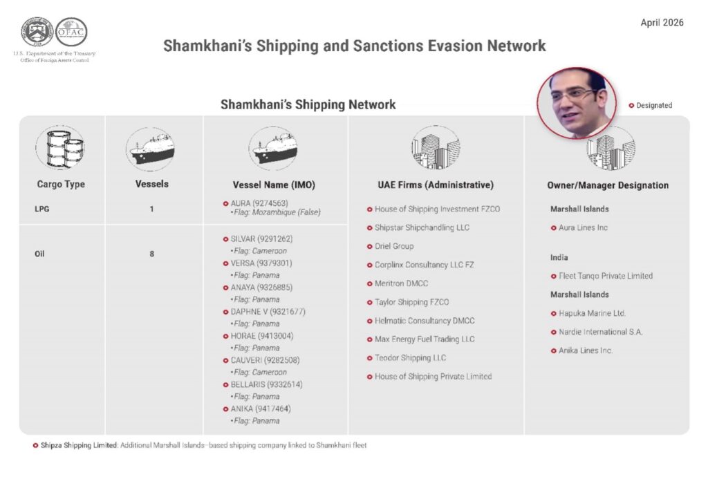 وشملت الإجراءات أكثر من عشرين فرداً وشركة وسفينة، في عملية نوعية استهدفت بشكل مباشر إمبراطورية الشحن التي يديرها محمد حسين شمخاني، نجل المسؤول الأمني الإيراني الراحل علي شمخاني، بالإضافة إلى تفكيك مخطط دولي لغسل الأموال شمل “النفط مقابل الذهب” بين طهران وحزب الله وفنزويلا.