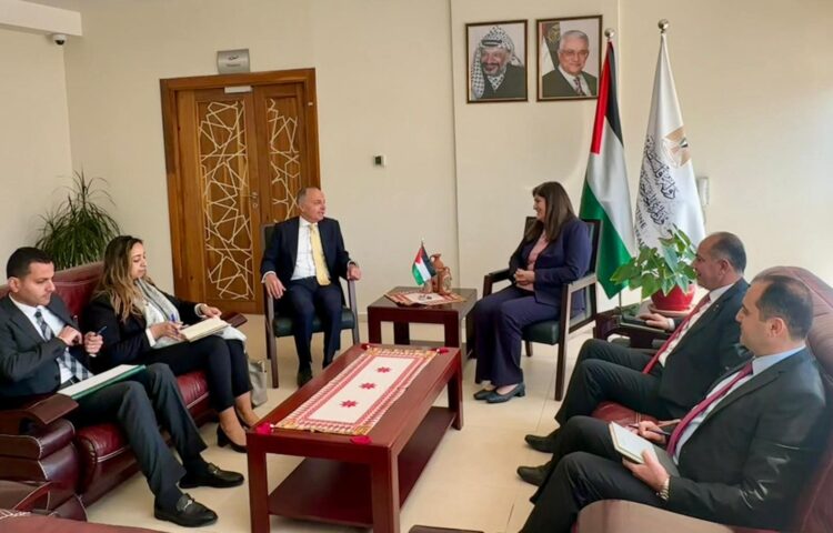 التقى سفير جمهورية مصر العربية في رام الله، إيهاب سليمان، بوزيرة الخارجية والمغتربين الفلسطينية، الدكتورة فارسين أغابكيان شاهين، في اجتماع رفيع المستوى لبحث التطورات المتلاحقة في الأراضي الفلسطينية المحتلة وسبل تعزيز التحرك الدبلوماسي المشترك لمواجهة التحديات الراهنة.