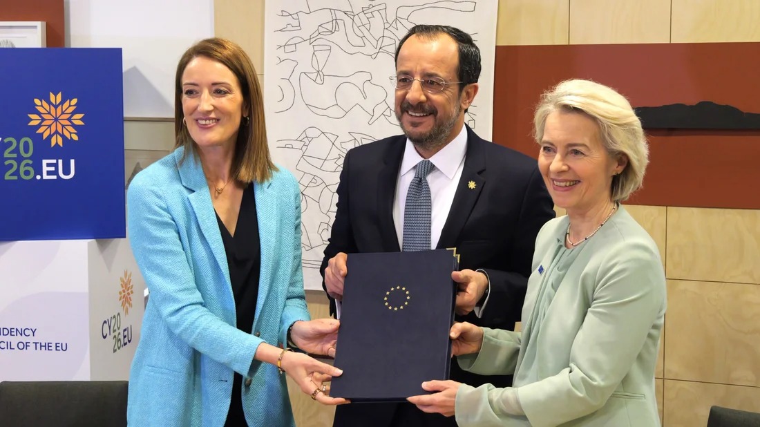 في خطوة وصفت بأنها “حاسمة” لمستقبل الاقتصاد القاري، وقع الرئيس القبرصي نيكوس كريستودوليدس، اليوم الجمعة 24 أبريل 2026، رفقة رئيستي البرلمان والمفوضية الأوروبيين، روبرتا ميتسولا وأورسولا فون دير لاين، على خارطة طريق إصلاحية شاملة تحت عنوان “أوروبا واحدة، سوق واحدة”، تهدف إلى توحيد الأسواق وتعزيز القدرة التنافسية للاتحاد الأوروبي.