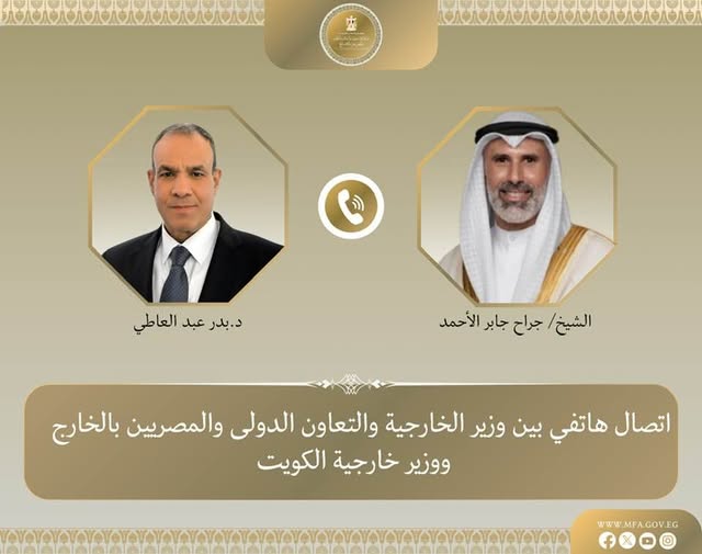 أجرى وزير الخارجية المصري، بدر عبد العاطي، اتصالاً هاتفياً اليوم السبت مع نظيره الكويتي، جراح جابر الأحمد الصباح، في إطار التنسيق المستمر بين القاهرة والكويت للتباحث حول التطورات المتلاحقة في المنطقة وسبل خفض التصعيد الإقليمي المتصاعد.
