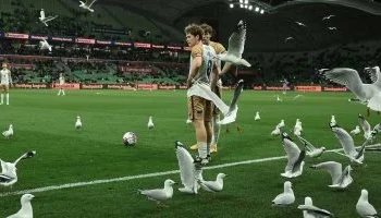 لاول مرة فى الملاعب العالمية …طيور النورس تغزو ملعب ملبورن وتوقف مباريات الدورى الأسترالى